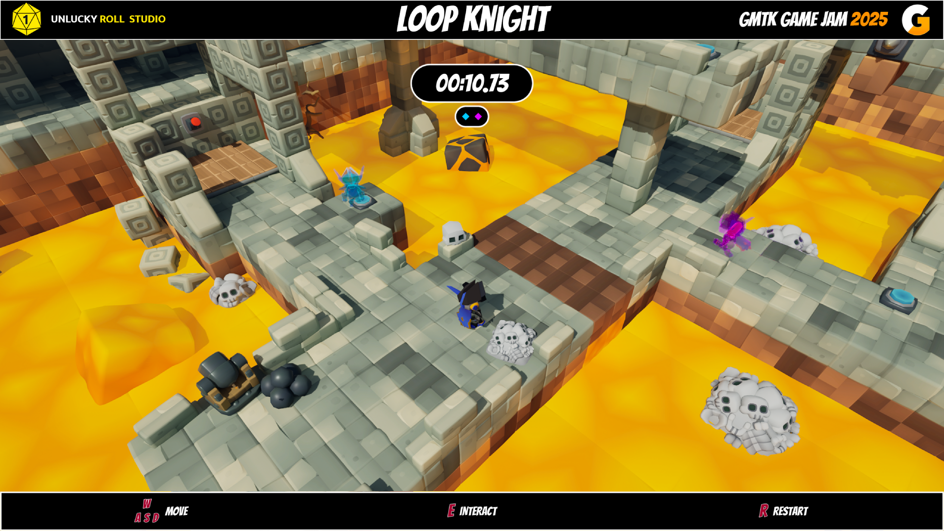 Created for the GMTK Game Jam 2025, Loop Knight is a short but clever puzzle game built around a single core mechanic: temporal clones.